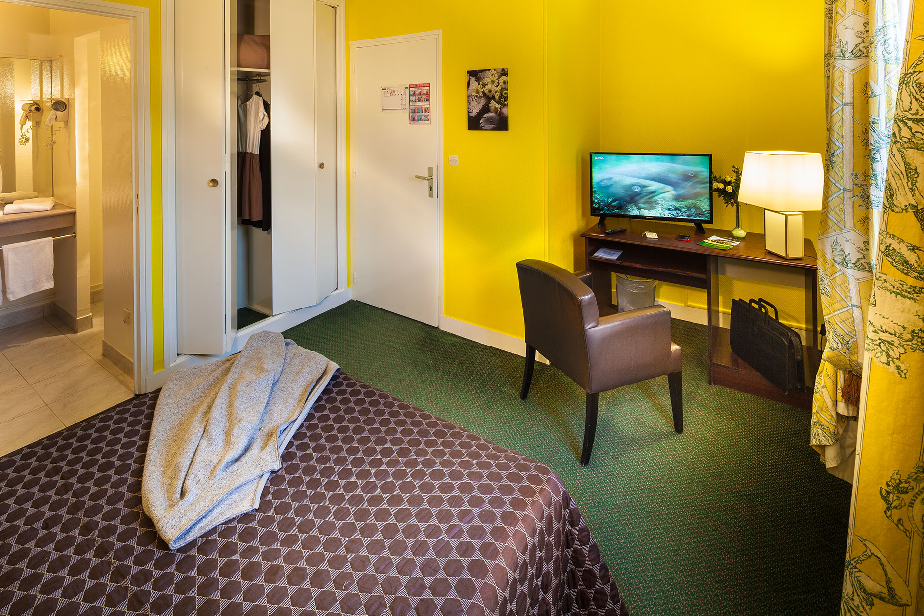 - une literie confortable, équipée d'un bureau et d'un écran plat, connexion Wifi gratuite